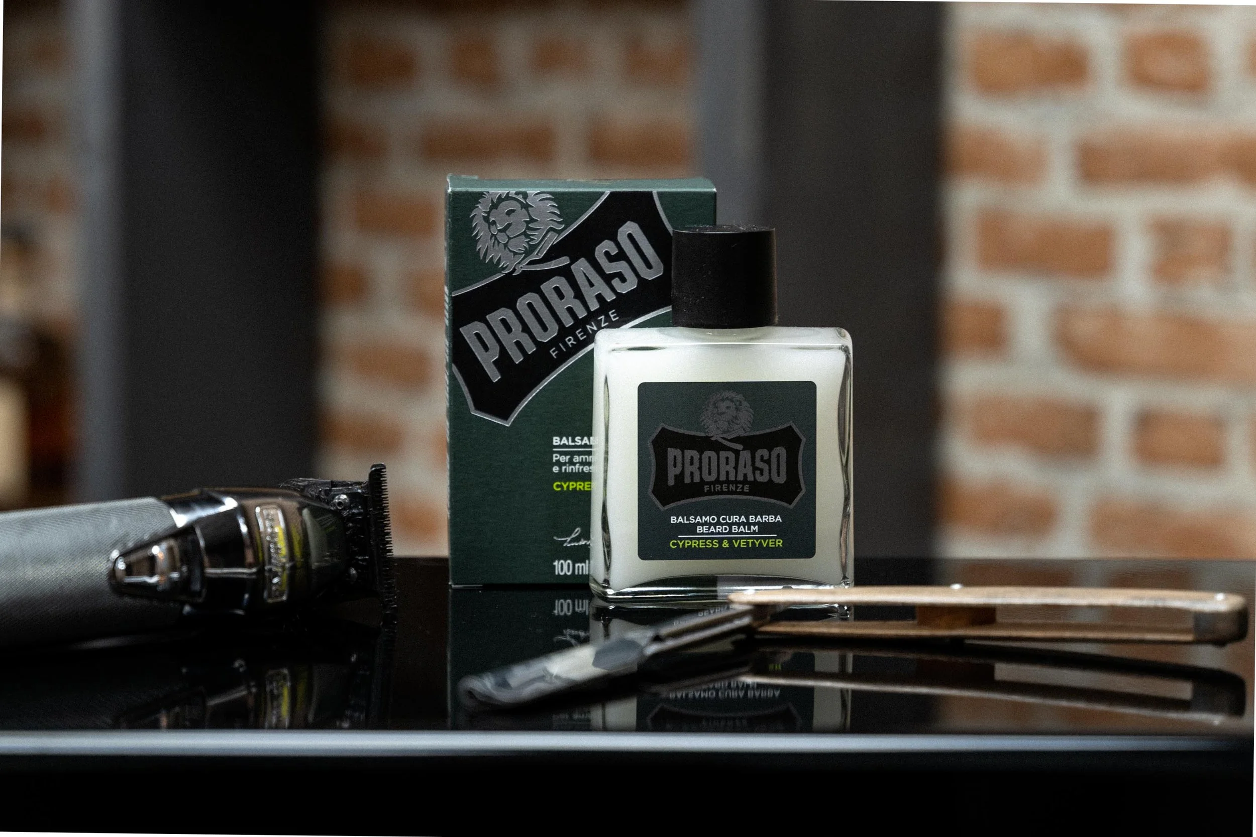 The Proraso Beard Balm has been carefully formulated to ease the discomforts of beard itch during the first few weeks of a new beard caused by dry skin. An effective moisturiser that leaves skin smooth and refreshed with a fresh scent of cypress, amber and vetiver.