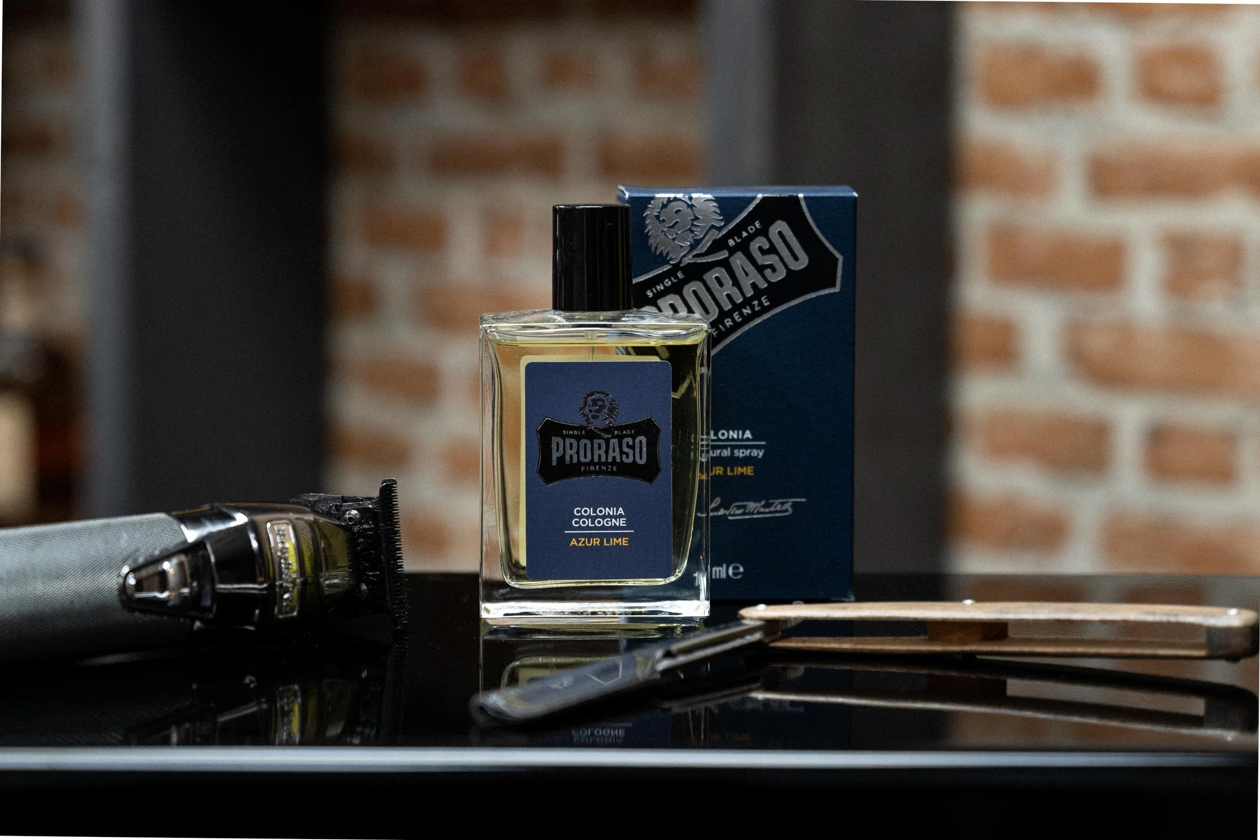 Proraso Azur Lime Cologne features the vivid citrus freshness of lemon and orange enhanced with mint leaves and juniper berries for a surprisingly creamy richness along with hints of musk, wood and patchouli. The cologne leaves skin feeling refreshed and your senses livened.